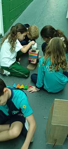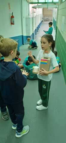 Os alunos do 2º ano C realizaram uma atividade utilizando materiais recicláveis, em um trabalho integrado entre as disciplinas de Geografia, Ciências e Arte. Durante a proposta, eles exploraram a importância da reutilização de materiais e observaram algumas de suas propriedades, como resistência, textura e utilidade.