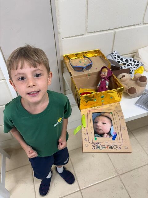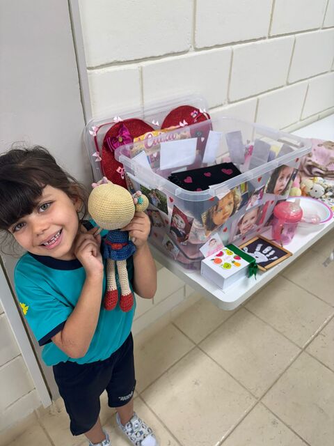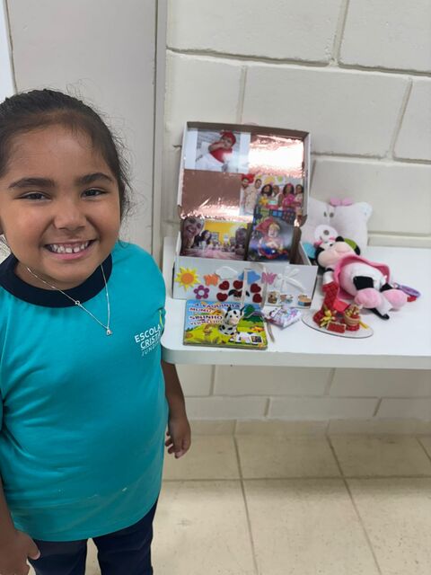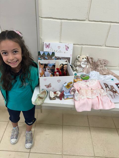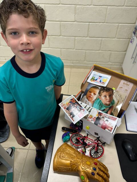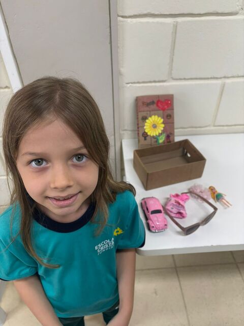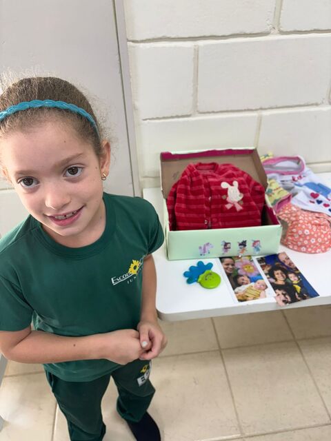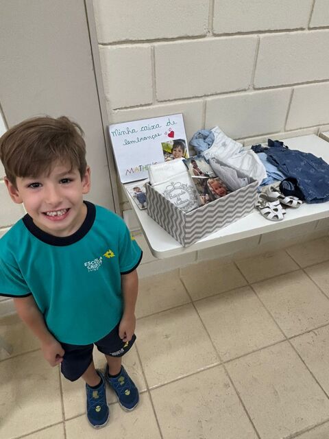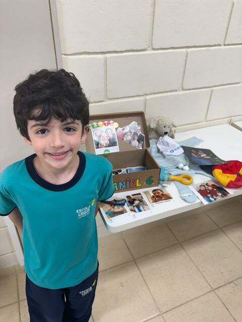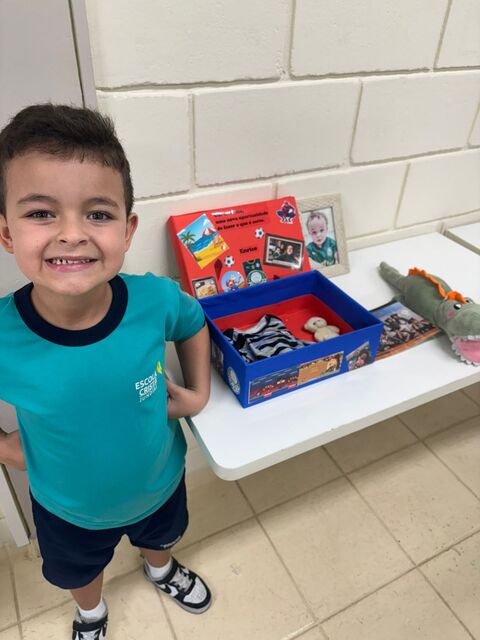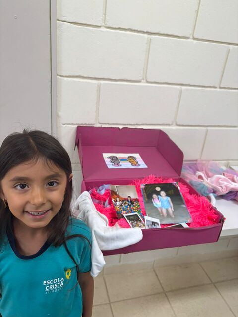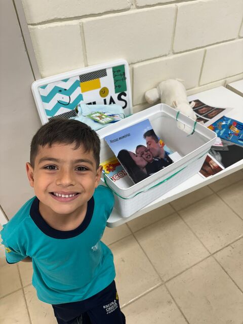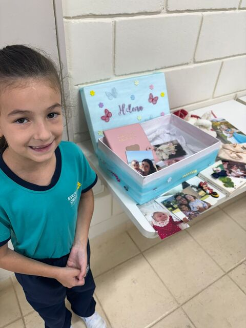 Os alunos do 1º A trouxeram uma caixa de memórias cheia de fotos e lembranças especiais da sua vida.